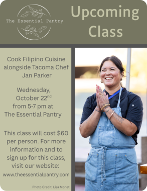 Join celebrated Tacoma Chef Jan Parker on Wednesday, October 22nd from 5-7PMfor a lively and interactive evening exploring the flavors of the Phillipines through its most iconic dish: Adobo. Participants in the class will learn how to prepare Chicken Adobo with rice, discover several adobo variations, and cook a vegan-friendly Mushroom and Daikon Adobo.The class will begin with a chef-led demonstration, followed by a hands-on experience in small groups. Everyone will taste, cook and take home the knoledge needed to recreate adobo in their own kitchens. .
