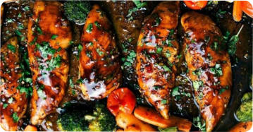 8. Once everything is done cooking, serve the chicken and vegetables with the remaining balsamic and Italian dressing mixture poured on top.